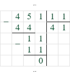 $45,1 : 1,1 = 451 : 11 = 41$