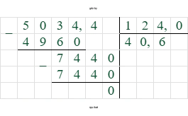 $503,44 : 12,4 = 40,6$