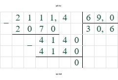 $211,14 : 6,9 = 30,6$