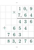 $10,9 \cdot 7,64 = 83,276$