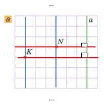 Ответ: Через точки K и N проводятся вертикальные прямые (параллельные прямой a) и горизонтальные прямые (перпендикулярные прямой a).