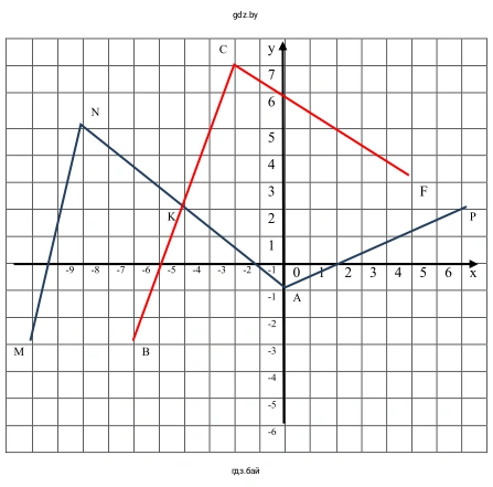 6.78. Постройте ломаную MNAP, если М(–10; –3), N(–8; 5), А(0; –1), Р(7; 2), и ломаную BCF, если F(5; 3), С(–2; 7), В(–6; –3). Отметьте точки пересечения ломаных и запишите их координаты.
