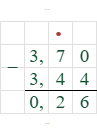 $3,44 - 3,7 = -0,26$.