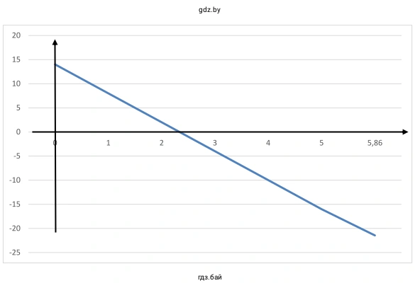 - Отметить на координатной плоскости две вычисленные точки: $(0; 14)$ и $(5.86; -21.16)$.
