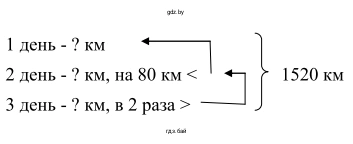 П.34. За три дня автобус проехал 1520 км. Во второй день он проехал на 80 км меньше, чем в первый, а в третий − в 2 раза больше, чем во второй. Сколько километров проехал автобус в первый день?